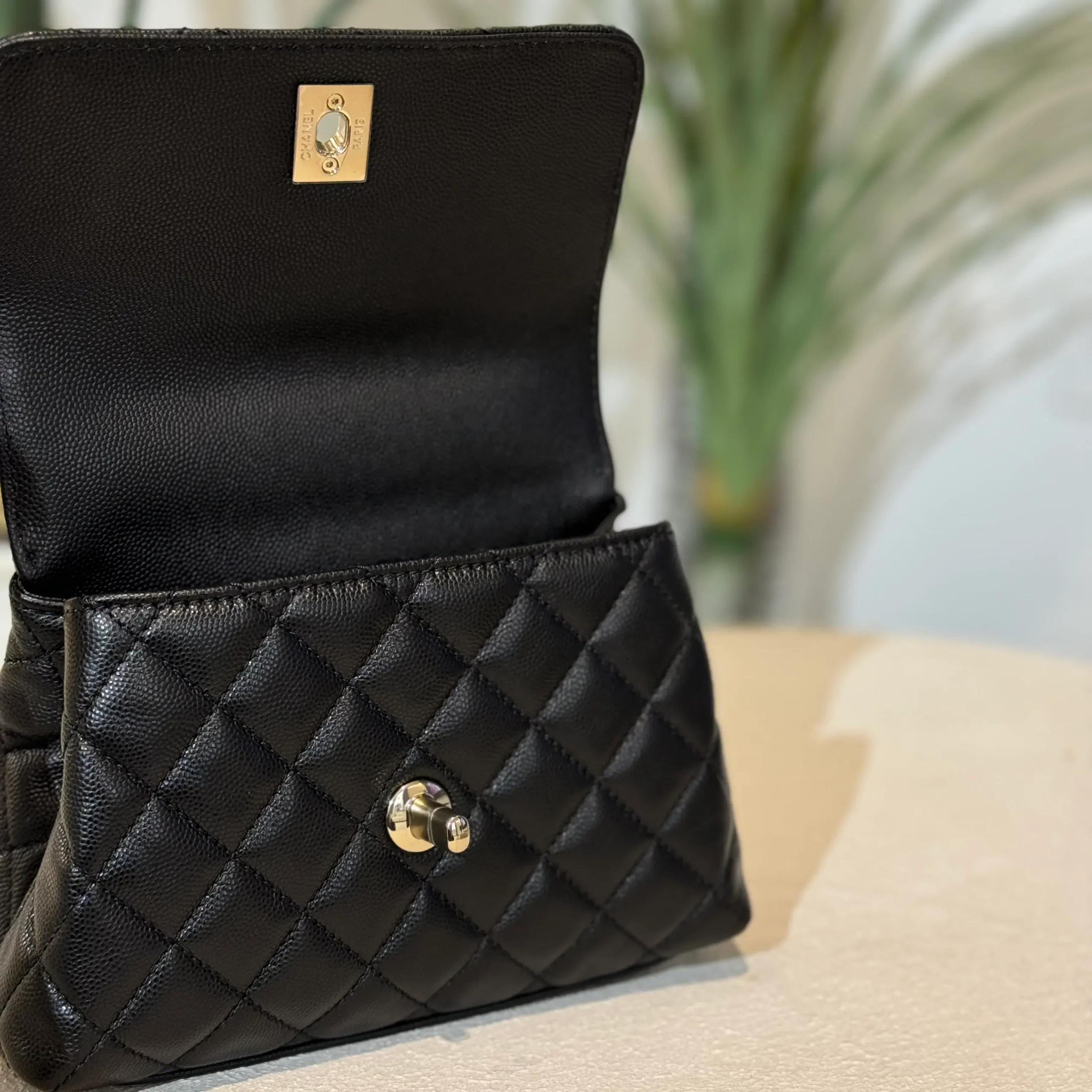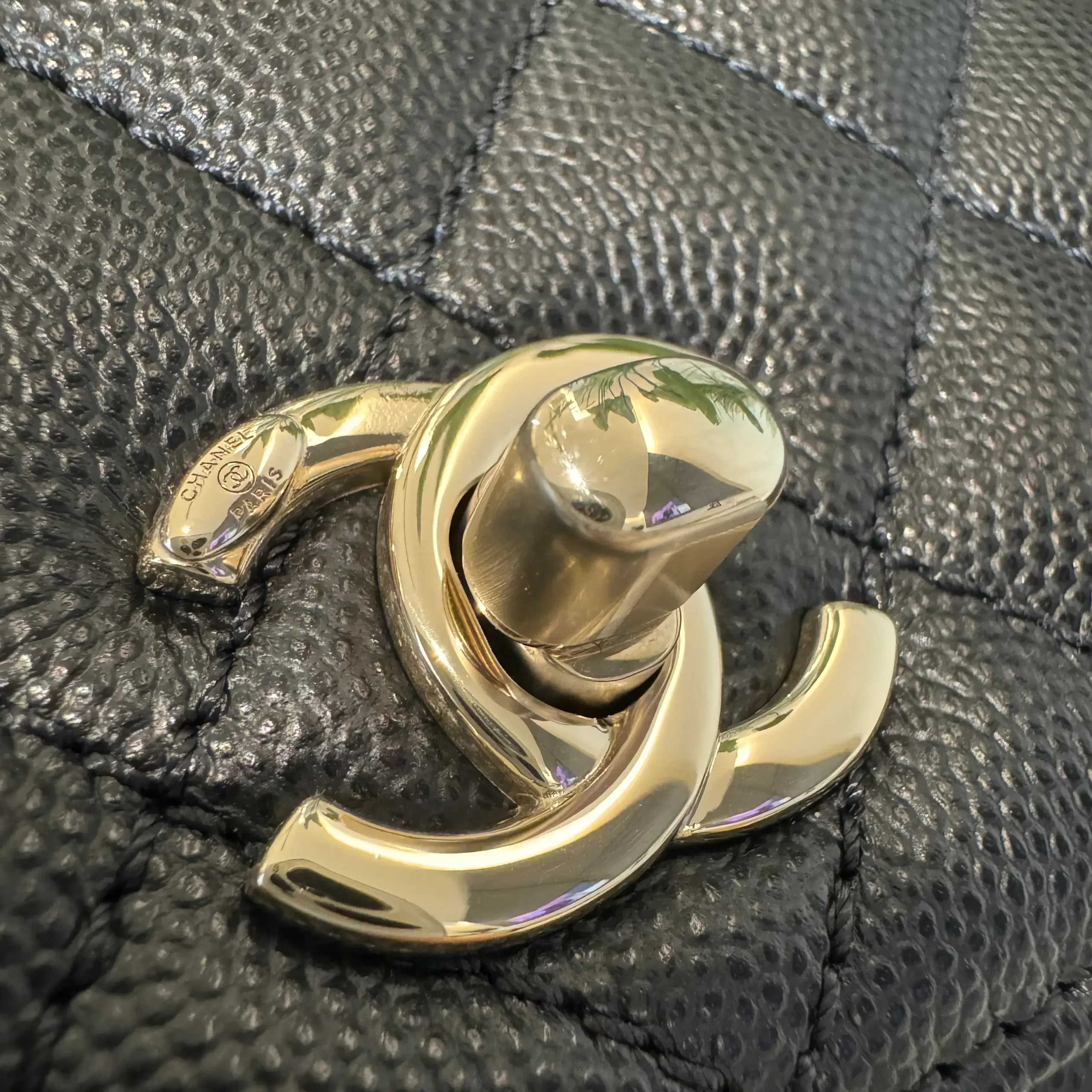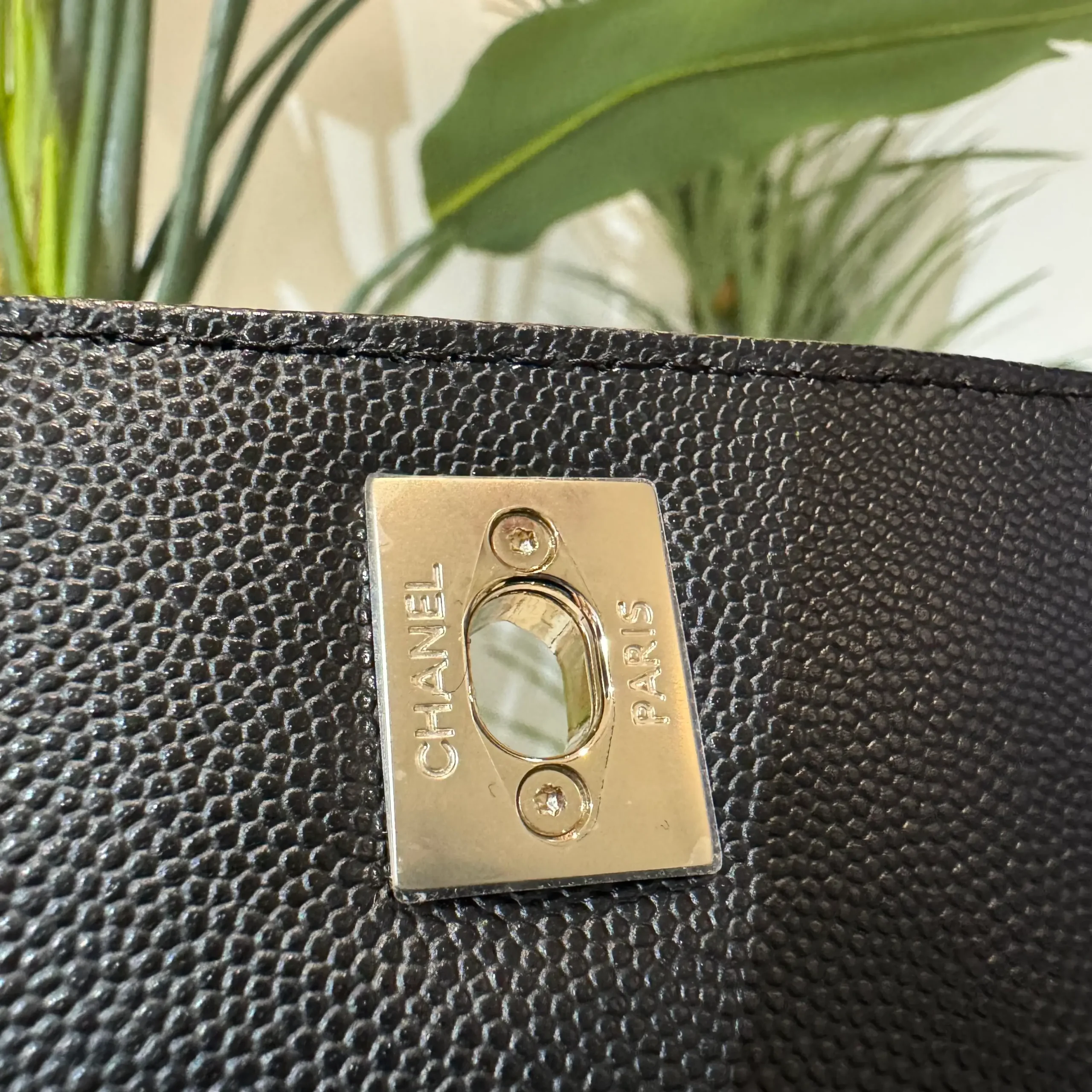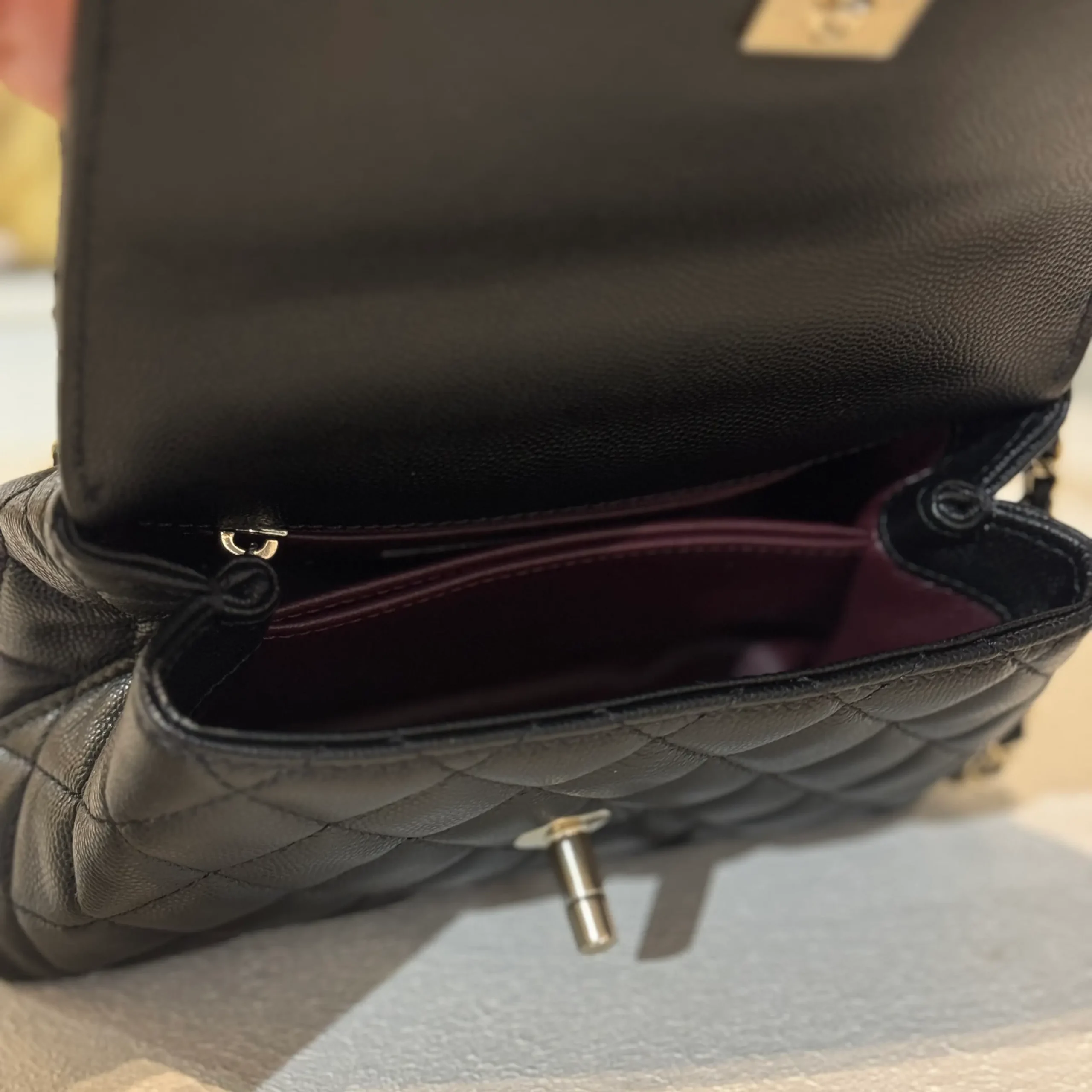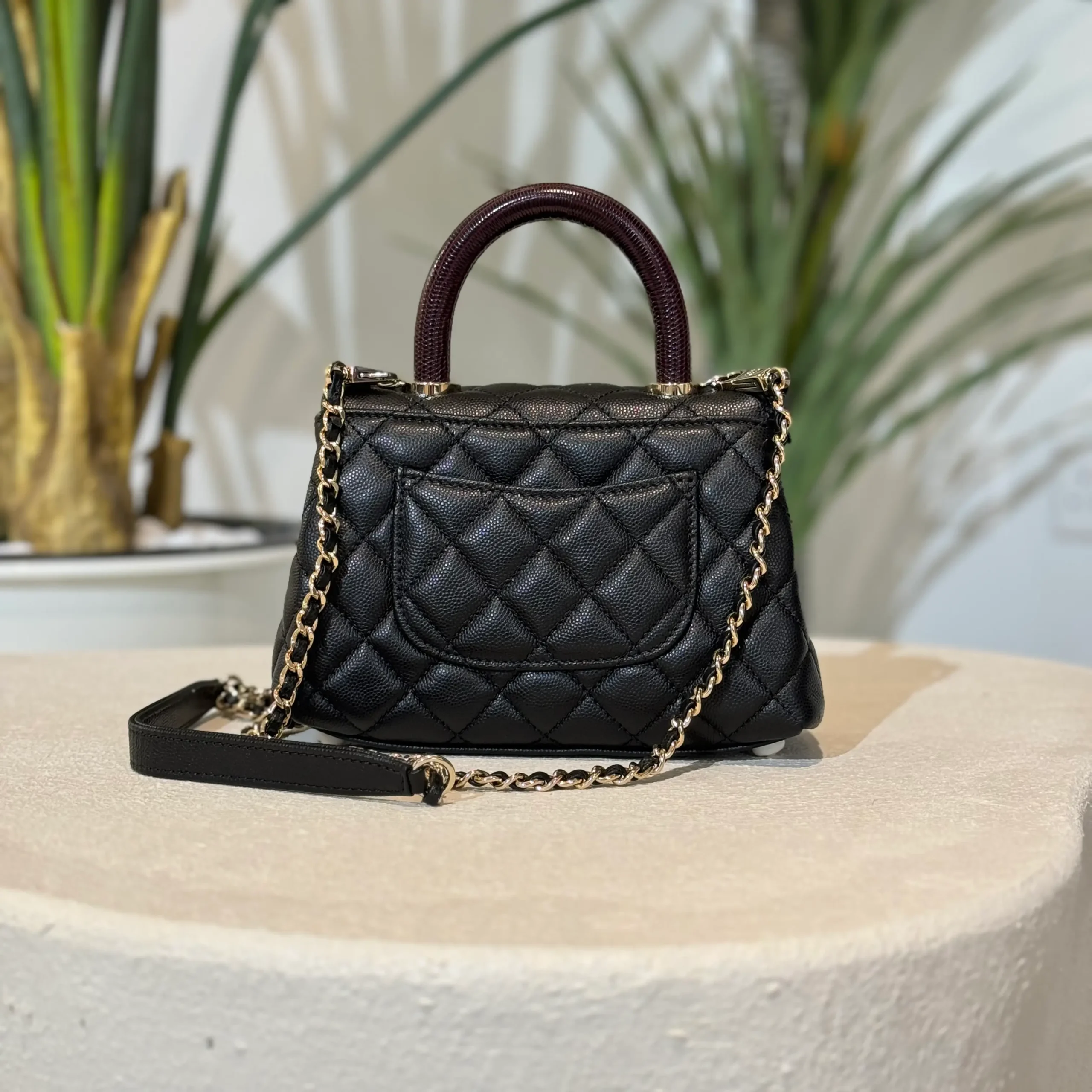 - Material: Caviar & Maroon Lizard Handle with Champagne hardware