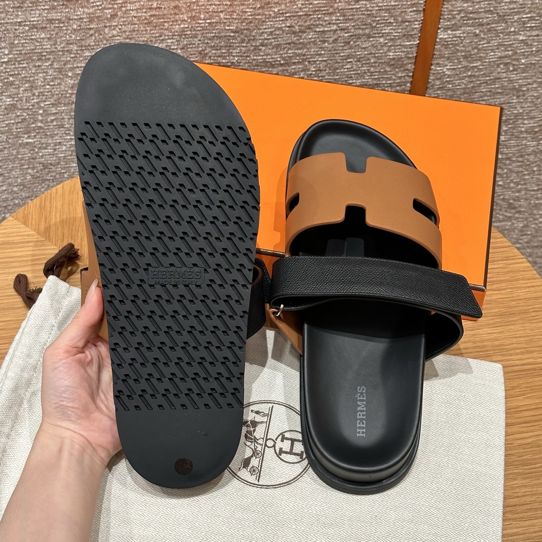 Techno-sandal in Chypre leather mules calfskin with anatomical rubber sole and adjustable strap. A sleek design for a comfortable casual look.