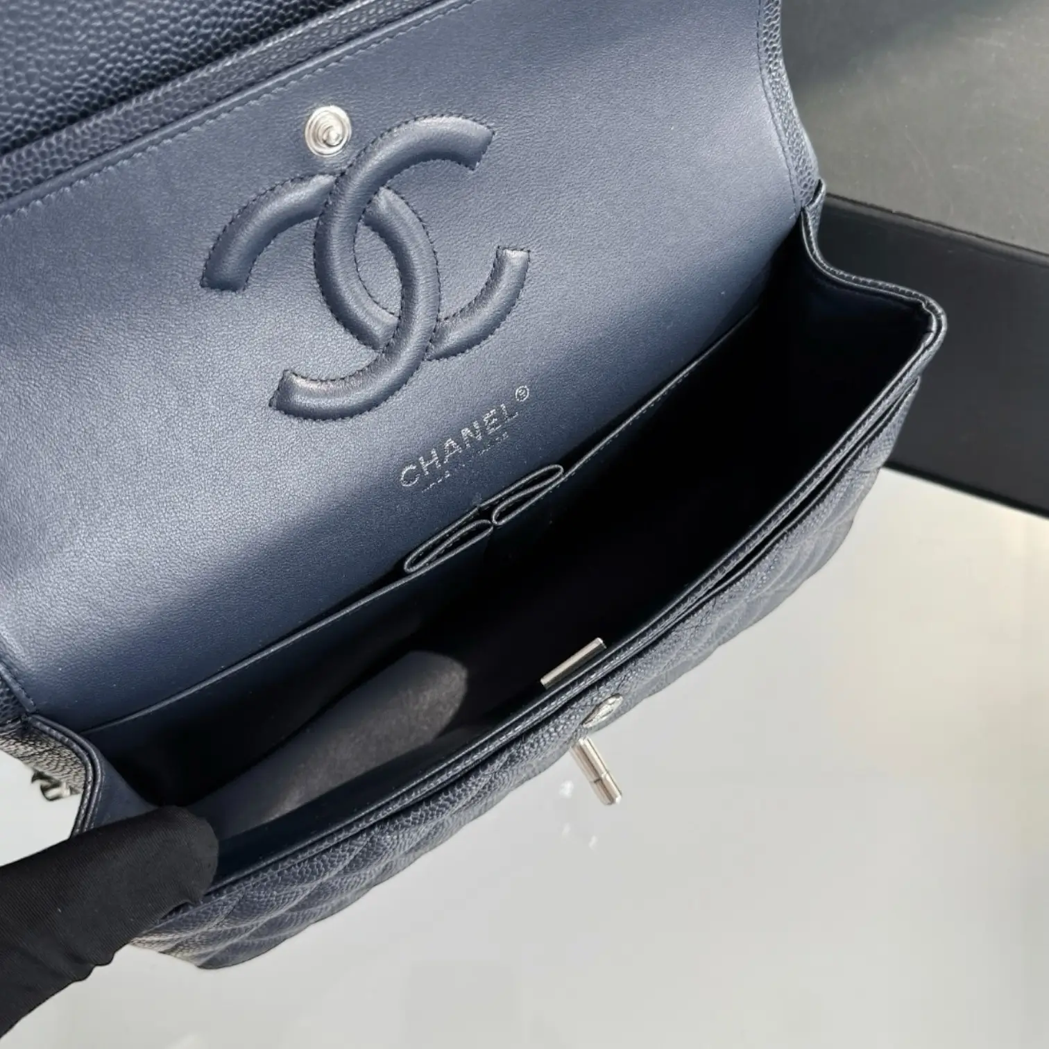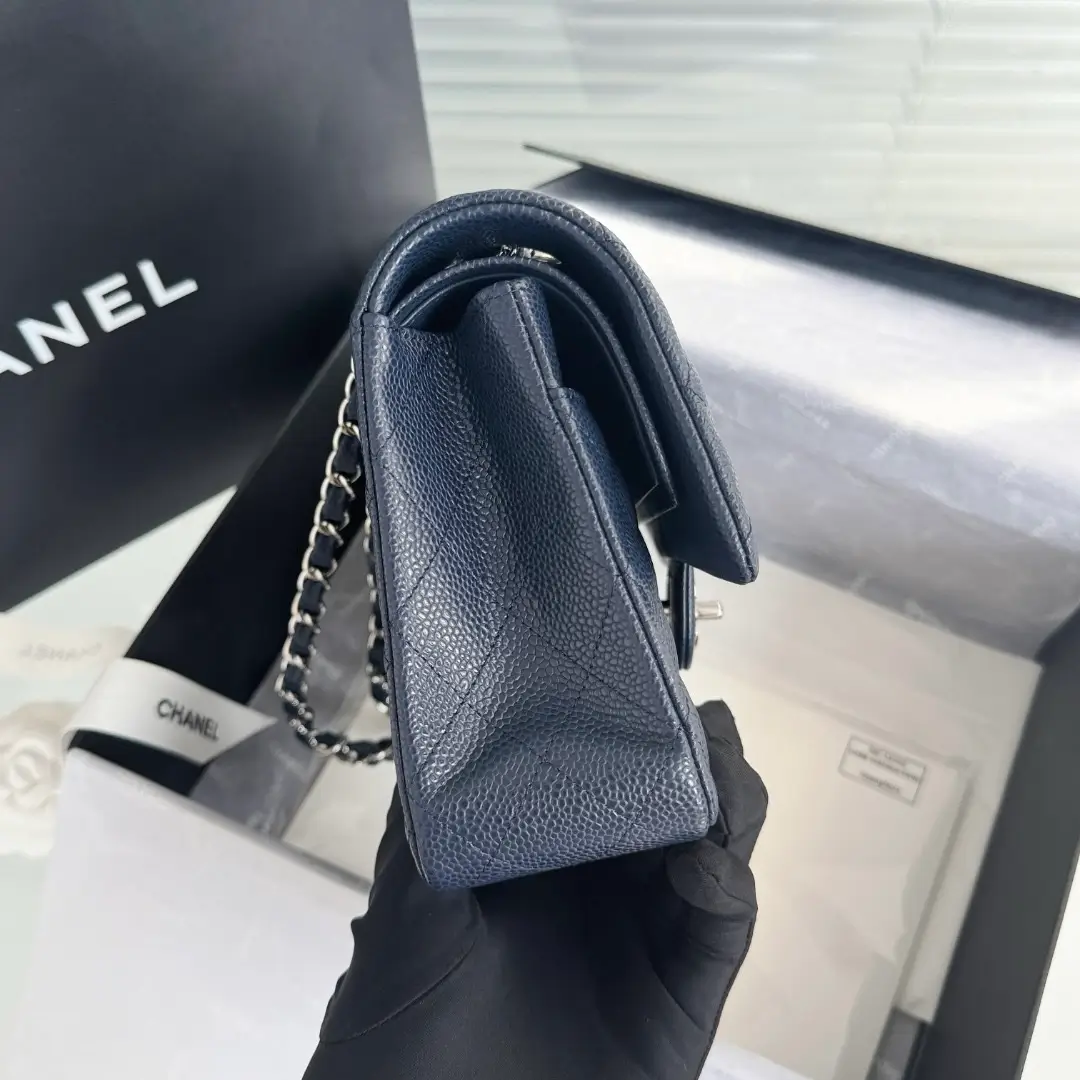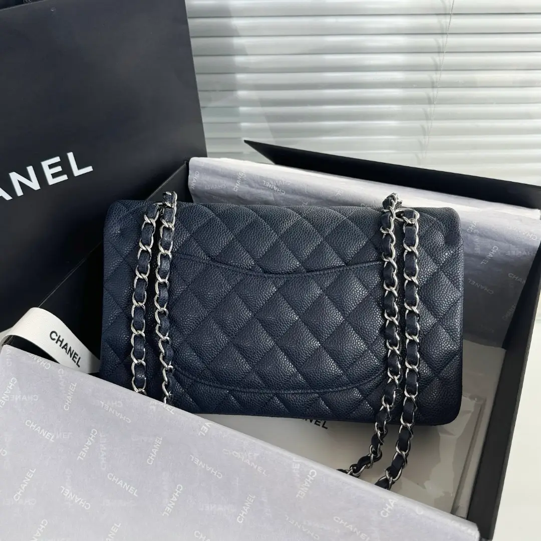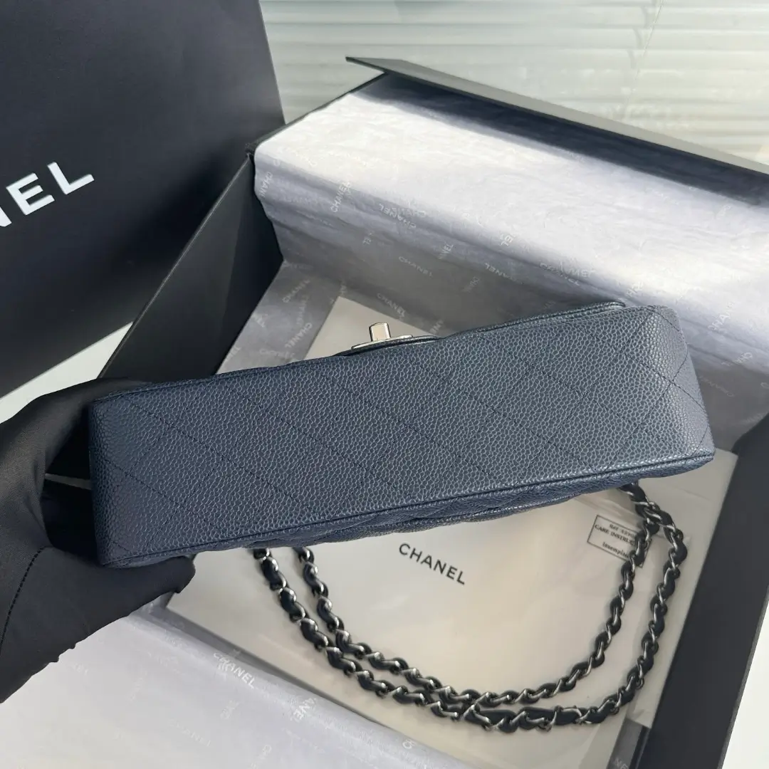 Material: Caviar Hardware: Silver Hardware Dimensions: 25.5cm x 16cm x 6.5cm