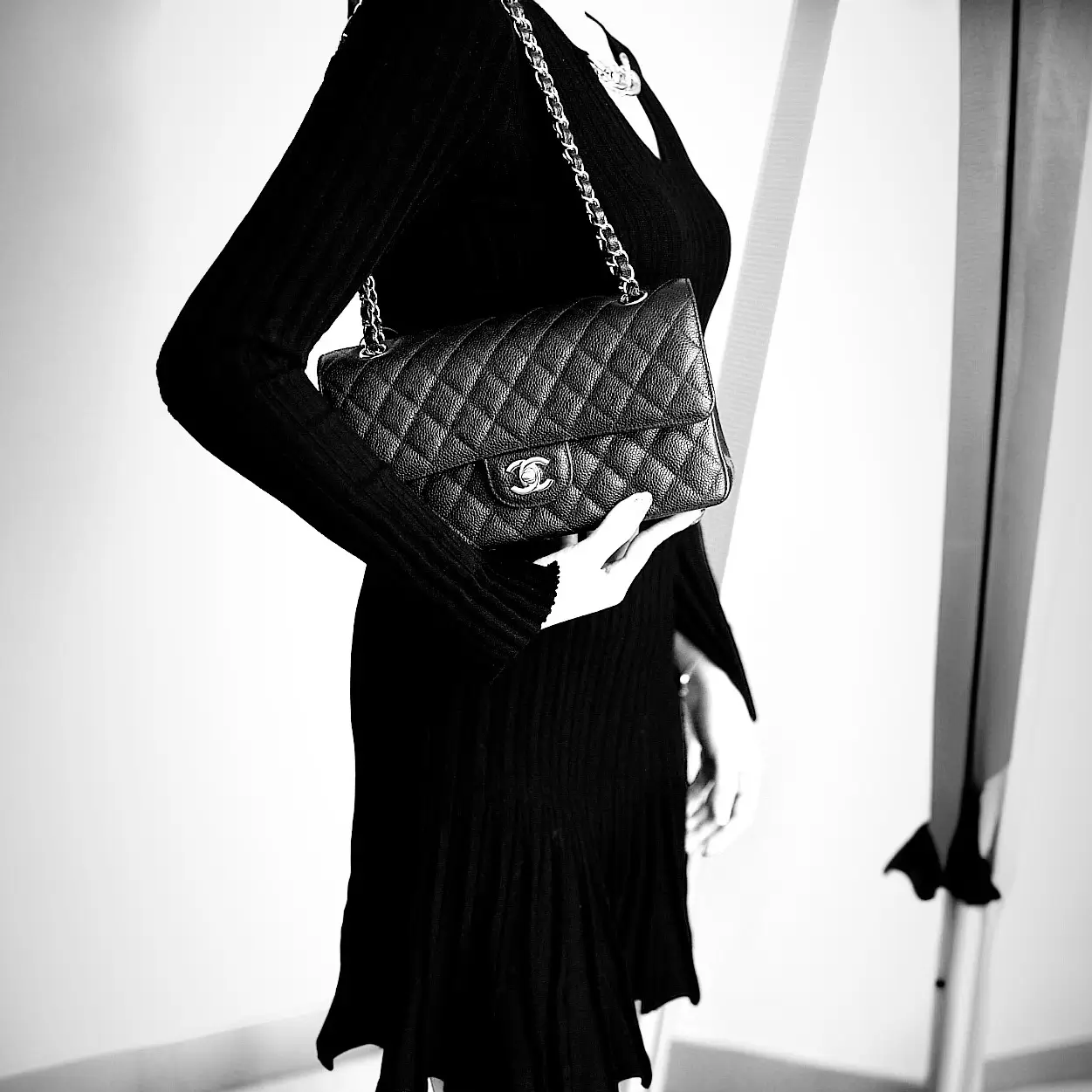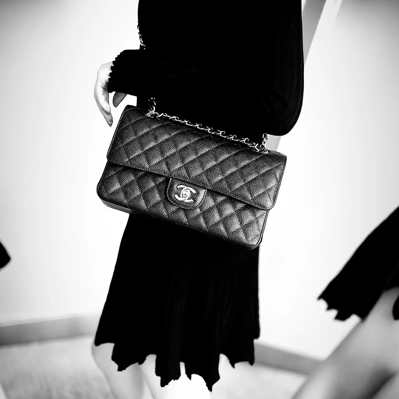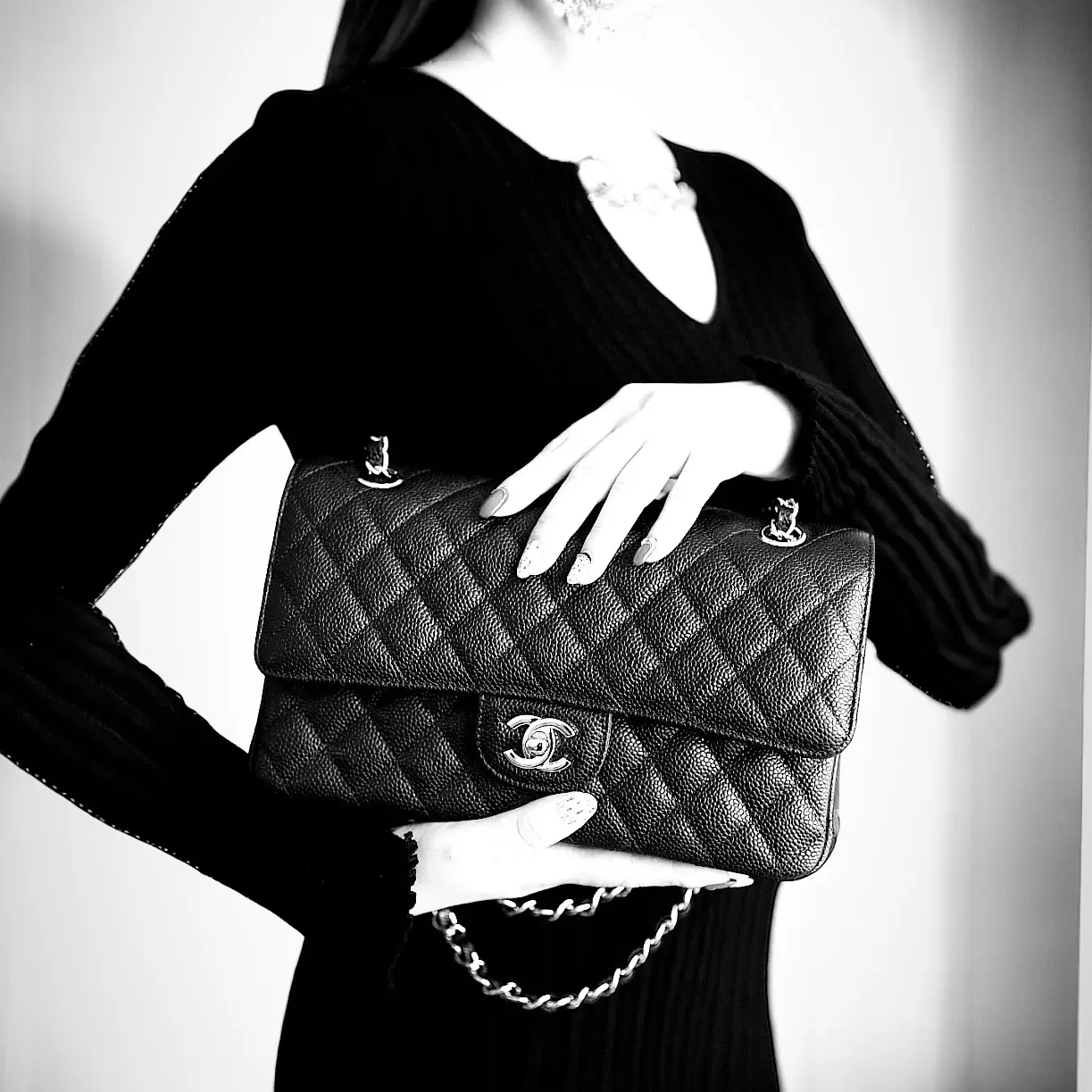 Material: Caviar Hardware: Silver Hardware Dimensions: 25.5cm x 16cm x 6.5cm