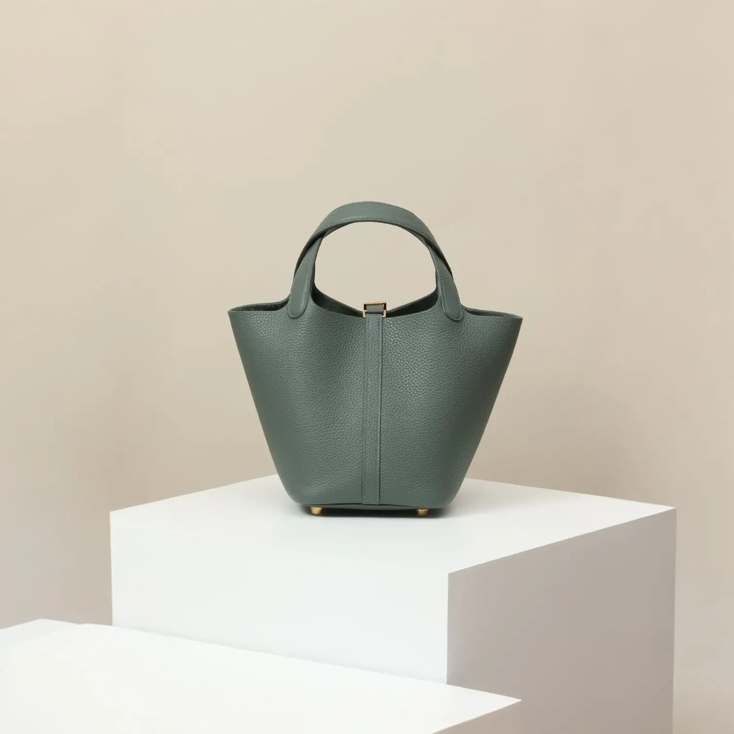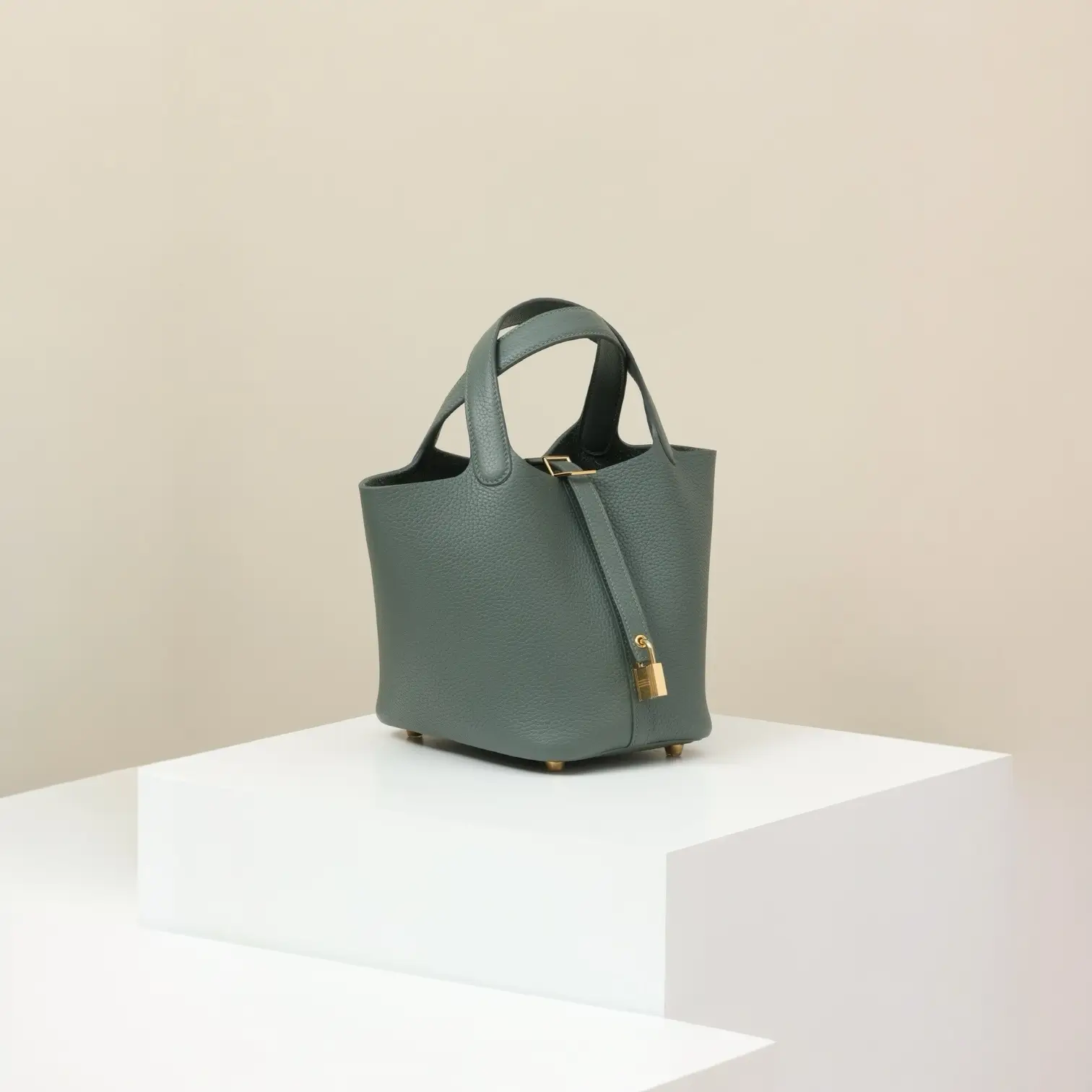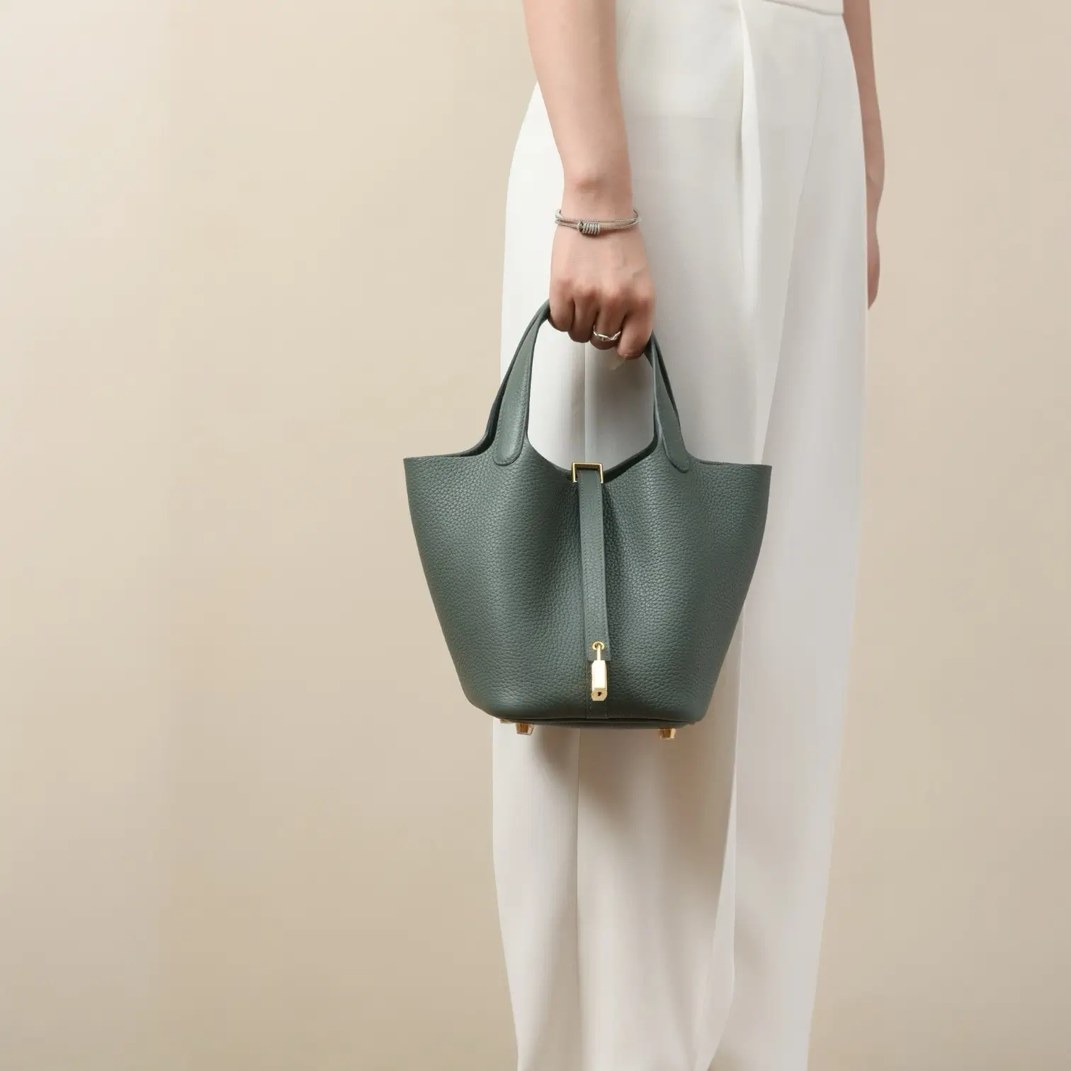 TC large cowhide bucket bag A strap is added to the opening And equipped with an "H" special lock Portable and light to carry